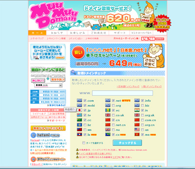 私も使っている ムームードメイン は一年間のドメイン使用代が950円と激安です。