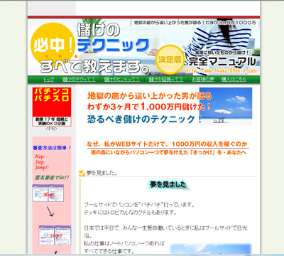 めざせ、不動産投資で月々20万のキャッシュフローTOPへ ⇒ アフィリエイトでお金を稼ぐ B稼ぐ編、お金を稼ぐコツ、その3 |