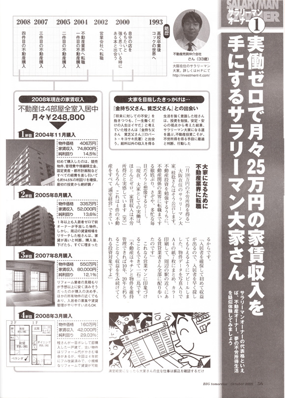 めざせ、不動産投資で月々20万のキャッシュフローTOPへ ⇒ ビッグ・トゥモロウさんからの取材依頼 |