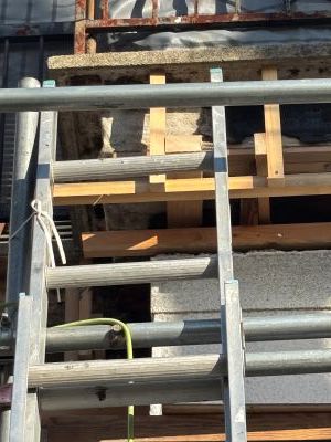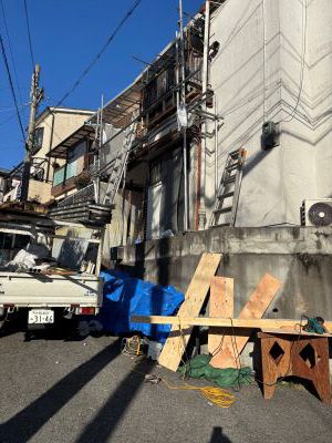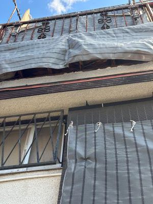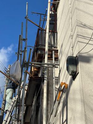 2024年9月、入居者さんから手紙が来ました。内容を要約すると、2022年10月14日に突然外壁が崩れました。という内容で 最初は日付の聞き間違いかと思いましたが、外壁が崩れたのは2年前でした。 電話をして状況を詳しく話を聞くと10年前から雨漏りは始まっており、 おそらくですがベランダの防水が切れ、すき間から外壁内部に雨が侵入し、 時間をかけてベランダと外壁の下地が劣化したため外壁が崩れたんだと思います。 すぐに修理の依頼を業者さんにしたのですが、いつもお願いしている大工さんがケガをして、 すぐにはできないとのことで新しい業者さんを探すことになり、 6社ほど見積りをとり、施工内容と金額があった業者さんに修理をお願いしました。 足場を組み、4日間で修理完了です。 |