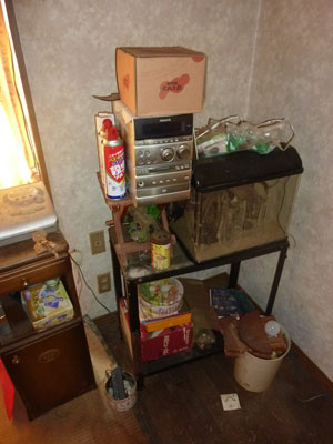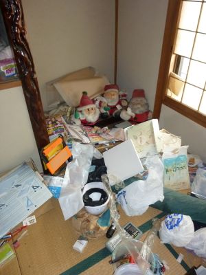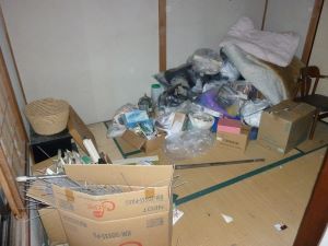 ゴミ屋敷、裁判所の資料通り、引渡直後の室内はすごい状態でした。 大量のゴミと荷物が夜逃げそのまま置いてあり、今回も業者さんに片付けを依頼せずに自分で片付けたのですが、 楽しかった時代の家族でとった写真などのアルバムや奥さんの結婚当時、 同僚たちから贈られたメッセージ付きの色紙などがそのまま放置されていました。 元所有者さんの現在の状況は知りませんが、おそらくお金がなくなり、 奥さんとも離婚が成立しており子供とも離ればなれになっているのかもしれませんね。 お金の切れ目が縁の切れ目ともいいますしね。 競売不動産を取り扱っていると、このような人生を垣間見ることがあります。 どんな理由で借金をして、返せなくなったかも私には知るよしもありませんが、いろんな人生を間近で感じることができます。 ゴミの量ですが、一見するとあまりゴミや荷物がないように感じるかもしれません。 最初、私も見たときは この程度なら 1日もかからずに片付けられるな。と思いました。 一軒家のゴミを甘くみてはいけませんでした。 |