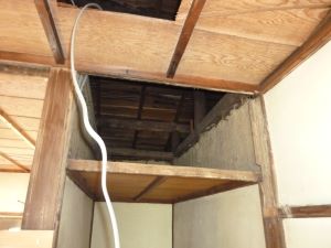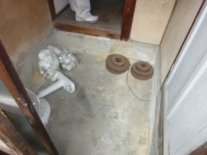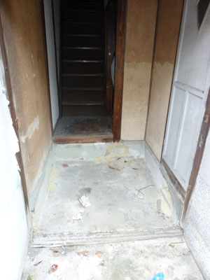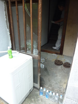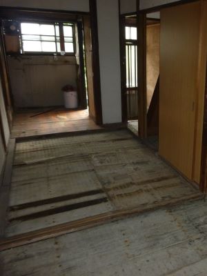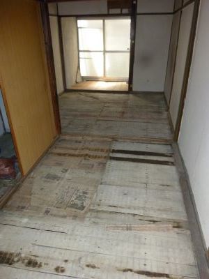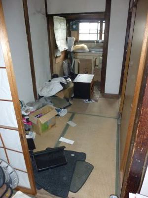 | 特別売却にて3戸、一括で落札しましたが、一番問題のある真ん中の2号室の状況です。 3戸中2戸は元所有者以外が住んでいましたのが、 真ん中の1件が元所有者が使っていた部屋で動産も放置のいつものゴミ屋敷な競売不動産でした。 キッチンやトイレなどの水回り設備 お風呂なし 玄関扉も含め全ての建具 2階に2箇所の雨漏り 床、壁、すべてが使い物になりませんでした。 中途半端なリフォームではダメだと思い 間取り変更も含めて、全部新品に変えるリノベーションに初チャレンジすることにしました。 まずは室内にある荷物やゴミを片づけなければいけません。 雨漏りもありますし設備も間取りもすべてが古く、この状態からリフォームとなると 100万、200万では足りないと思われ、かなりの金額が必要だと思われるので誰も入札がなかったんだと思います。 |