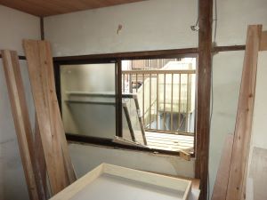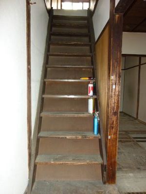 室内がかなり老朽化しており、雨漏りもあり、かなり大掛かりな修繕が必要と判断し、中途半端に直すのではなく、 すべて新品へと交換するリノベーションをすることにしました。 間仕切りなどの壁も壊し、階段も新たに踊り場を作って2階に扉も設置しました。 ただ、長屋であることと部屋の広さは1LDK程度なので家賃の上限やターゲットとなる入居者は限られてきますのでリフォームの予算は多く出せません。 キッチンやお風呂、トイレなどの水回りは最低限度のグレードに抑え、少しでも費用を節約しました。 |