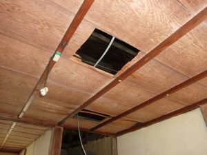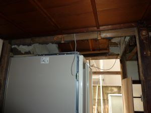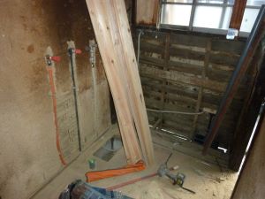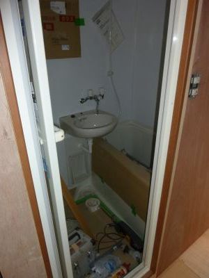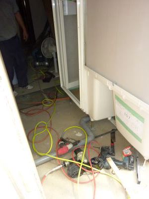 解体と造作工事の様子です、キッチンを解体したり電気工事ために天井に穴をあけたりと下準備をしています。 お風呂を設置箇所を解体し、空いたスペースへ給排水工事をしてからユニットバスを設置していました。 工事はまだまだ途中ですので、仕上がりが想像できませんね。 |