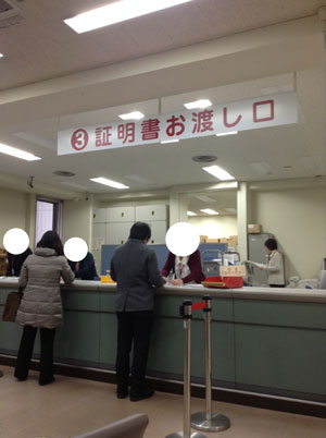 出来上がったばかりのカードと法人の登記事項証明書の発行の申請書を窓口に持っていき、証明書の発行をお願いしました。