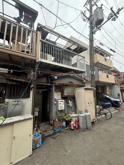 | なんと、人生で2度目の火事被害にあってしまいました。 火災の被害を経験するなど、なかなかないと思うのですが今回は隣地から火災が発生し、 その火が燃え広がり隣接地8件が全焼する大規模なものとなりました。 【2024 11/26】 第一報 朝9:12分、見知らぬ固定電話の番号より電話があり、物件を自分で管理してますので 不動産屋などから電話があるため、 気にせず電話にでると所有する物件のほとんどに加入している火災保険屋さんでした。 所有する藤井寺の物件の近くの他の加入者さんより火災被害の連絡をうけています。そちらは大丈夫ですか? という内容でした。 この時点では、入居者さんからも連絡はないし、近所の火災と言っていたので 近くでボヤぐらいの火事があったのかなぐらいで思っていました。 念のため、入居者さんの連絡先である固定電話に連絡したところ、コールはならず聞きなれない うろ覚えではありますが、 「機器が接続されていないか、使用可能な状態ではないためかかりません。」 という感じの自動音声が流れ、連絡がつきませんでした。 9:23分、連絡がつかなったので不安を感じ、火災保険屋さんに状況を確認するため電話をしました。 詳しい状況を聞くと、かなり近くが火元であることを知り電話を切ったあと ネットでニュースになっていないか検索すると 複数の大手ニュースサイトが火災当時に撮影された映像付きで報道していました。 その燃えている動画を見たときに、これヤバいのではないかと思いました。 【2024 11/24】 火災発生 夜20:30過ぎ 火災が発生しました。。ニュースにて2日後その事実を知りました。 【2024 11/26】 現地に向かう 近い隣接地からの出火であることとニュース映像をみて、これはただ事ではないと思い、すぐに現地に行くことにしました。 12:30ごろには現地につくことができましたが、ニュース映像から被害がひどい可能性があり 駅をおり徒歩10分ほどにある物件に近づくにつれ心臓がバクバクなって少し緊張しました。 物件に近づくにつれ、火災後のあの独特な木が焼けたニオイがしてきました。 物件までまだ数百メートルはありましたが、徐々にニオイがきつくなってきました。 |