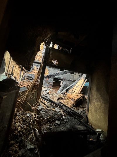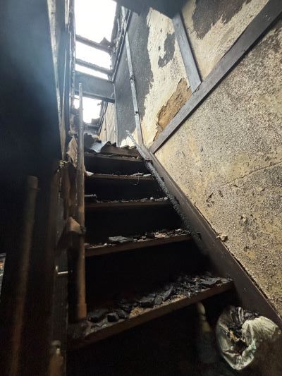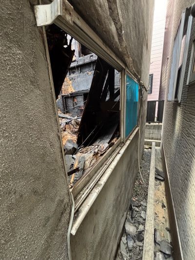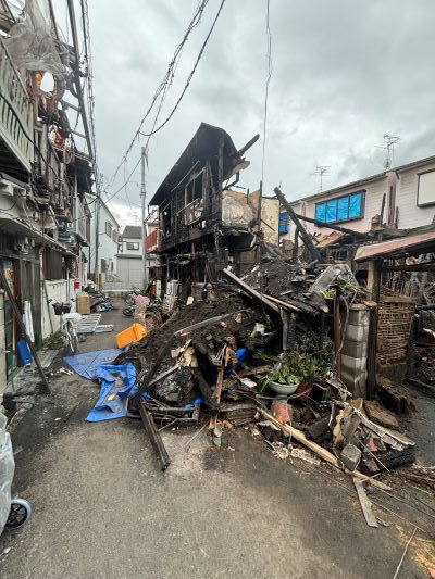 【2024 12/3】 警察の実況見分 管轄の警察署より電話がありました。実況見分をしたいので現地に来れる日はありませんか? と言われました。消防署からも現場検証をしたいので立ち会いをしてほしいと言われていたので 12月3日に両方の立会いをしてきました。 警察からは、特に何も聞かれることはなく、現場で写真を撮って帰りました。 火元が確定していることと、放火の可能性はなく事件性がなかったため、形式だけの実況見分だったのかもしれません。 消防署の立会いも室内に入り、いろいろと写真を撮っていました。 火事の状況を聞くと失火原因は不明のままだが、油のような可燃性による放火ではなく、 タバコの不始末か電気系統か原因は特定できないが何らかの失火であろう。 ということでした。長屋8件2階建て、延床面積338.3㎡全焼でした。 一番端にある私の物件が一番被害が少なく、屋根は焼け落ちていますが外壁は残っており、 道路側の玄関とキッチンは原型をとどめています。 お隣や出火元、その奥の家は、もっとひどい状態でした。 消防の人がいうには、道路奥が行き止まりで私の物件側からしか消化活動ができなかったため 私の物件から消化活動を始めたため、被害が一番少なったそうです。 |