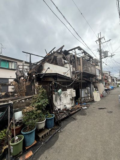 | 【2024 12/12】 罹災証明書の発行 朝10:27分、管轄の消防署から電話があり、罹災証明書の発行ができるようになりました。いつごろ取りにこれますか? と聞かれたので、今から行きます。昼前にはそちらにつけると思います。と伝え 準備をして消防署へ向かいました。電車を乗り継いで1時間ちょいあればつきますが、 今回は車で行きました。 1ヶ月はかかると言われていたので、年内は難しいかもと思っていたのでだいぶ早く発行できるようになりました。 これで火災保険の手続きが進みます。 火災保険がおりないと建物解体の話し合いも進められないので一安心です。 【2024 12/30】 保険金の入金 罹災証明書を12日に発行し、その日郵送で保険金申請の書類を送りました。 保険金審査もあるので年内に保険金の振込みがあるとは思っていませんでしたが、 これで、一つの区切りがつきました。 火災発生から1ヶ月と1週間で火災保険関係の手続きが完了できました。 焼けただれた建物がまだ手つかずのままなので、こちらの処理の方が大変だと思いますが、 ひとつひとつ片づけていこうと思います。 【2025 1/6】 解体見積り依頼 昭和40年1月築の8件長屋です。出火元は壁すら残らない状態で焼け落ちており、 その奥も損傷が激しいものの少し壁が残っている状態でした。 真ん中の出火元とその隣の2件が壁も焼けており、 私の物件を含む手前の北側3件 奥の南側3件が壁が残っており個別での解体が難しい状況です。 本来なら解体は1件、1件個別でするのですが連棟ということと火災による損傷もあり 個別での解体は難しいので、少なくとも私を含む3件を同時に解体する必要があります。 お隣さんとは火災保険の関係で既に連絡先を交換しており、2件隣りの人もお隣さん経由で 連絡先の交換が終わっており、話し合いの結果 それそれで解体の見積りをとり、安いところでやりましょうか。となりました。 |