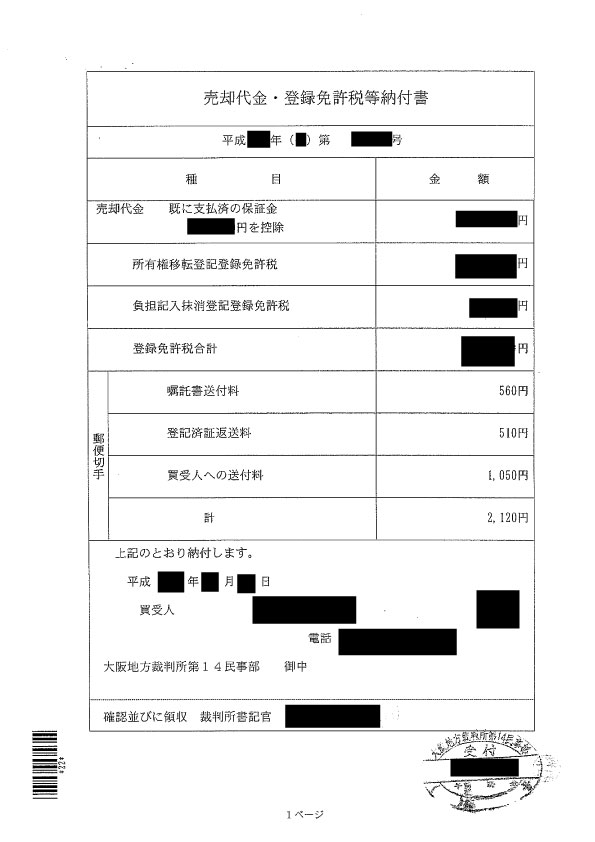 普通は、司法書士の先生に依頼し、手数料を支払い、登録免許税の納付や所有権移転登記を完了するのですが、競売物件はすべて、自分で手続きをしなればいけません。