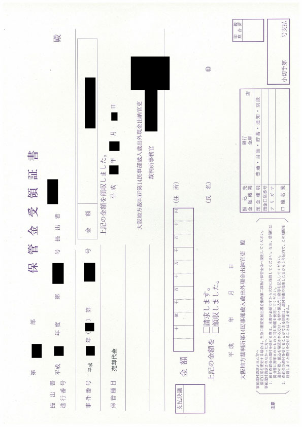 残代金の納付証明書として裁判所が発行する、保管金受領証明書です。